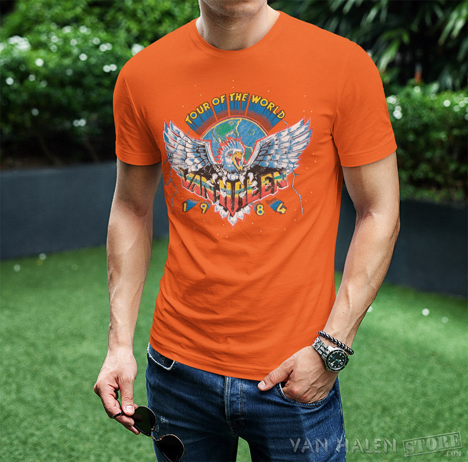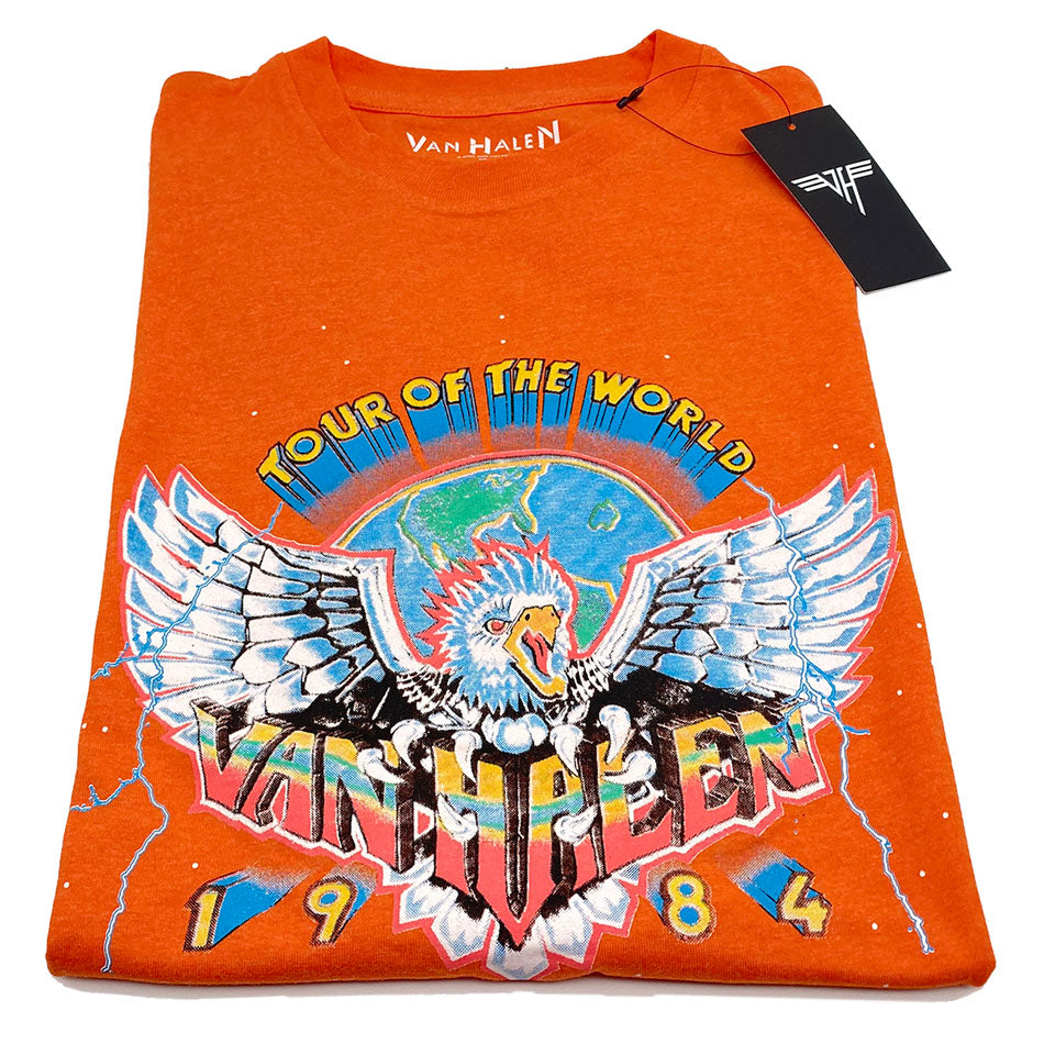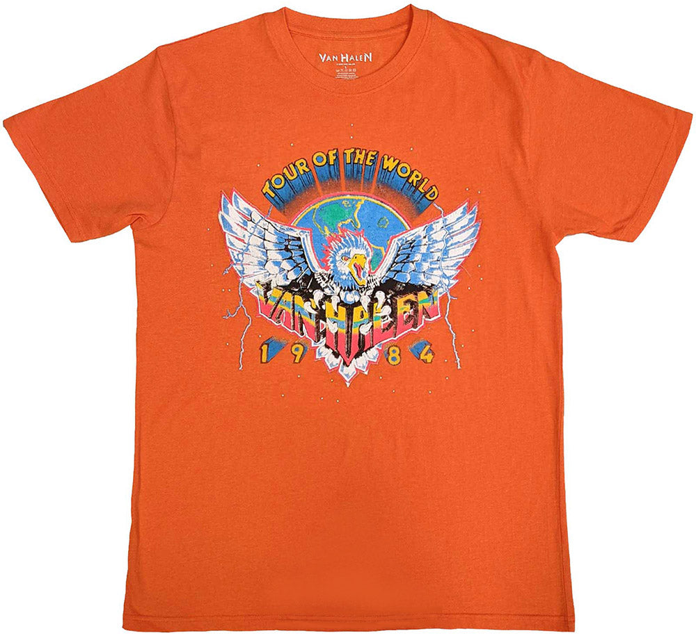 The famous design with the flying eagle carrying "VAN HALEN" in its talons, and lightning bolts shooting from the "Tour of the World" banner, for an electrifying touch!