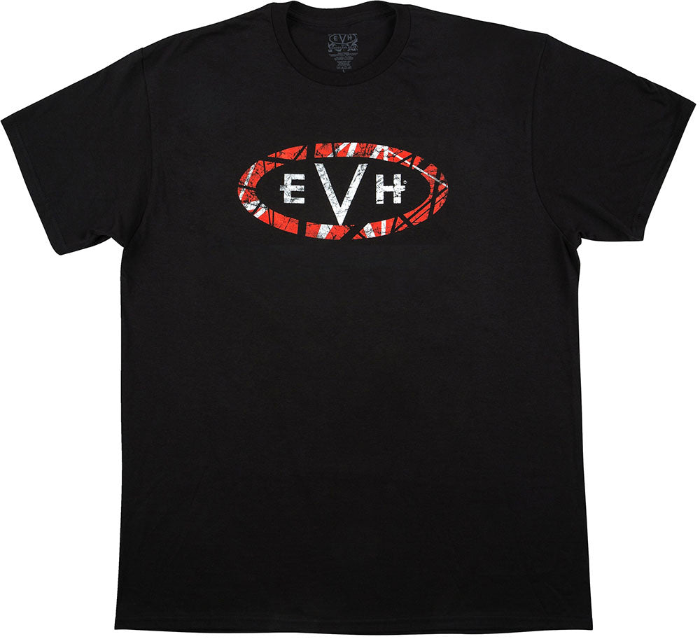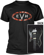 This shirt features a distressed EVH logo on the front, and Edward's main guitar on the back ... the WOLFGANG® USA Edward Van Halen Signature, in elegant, Stealth Black.