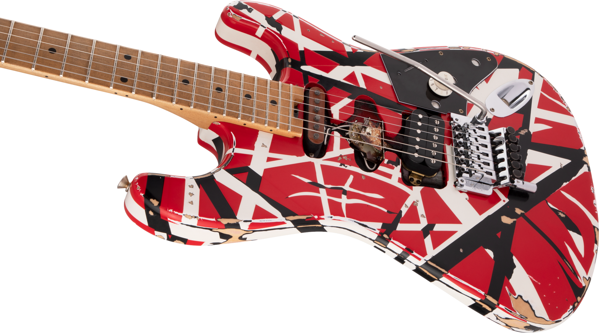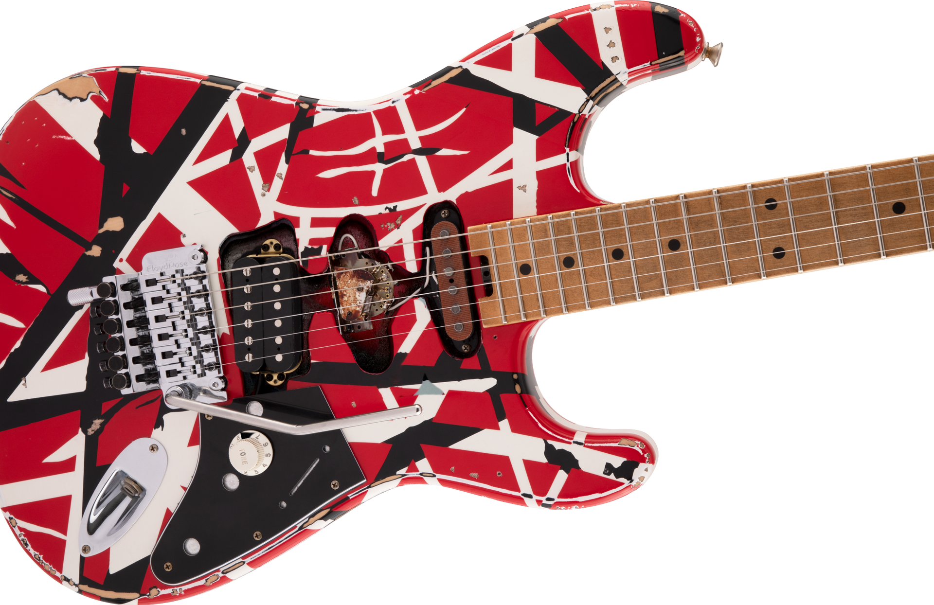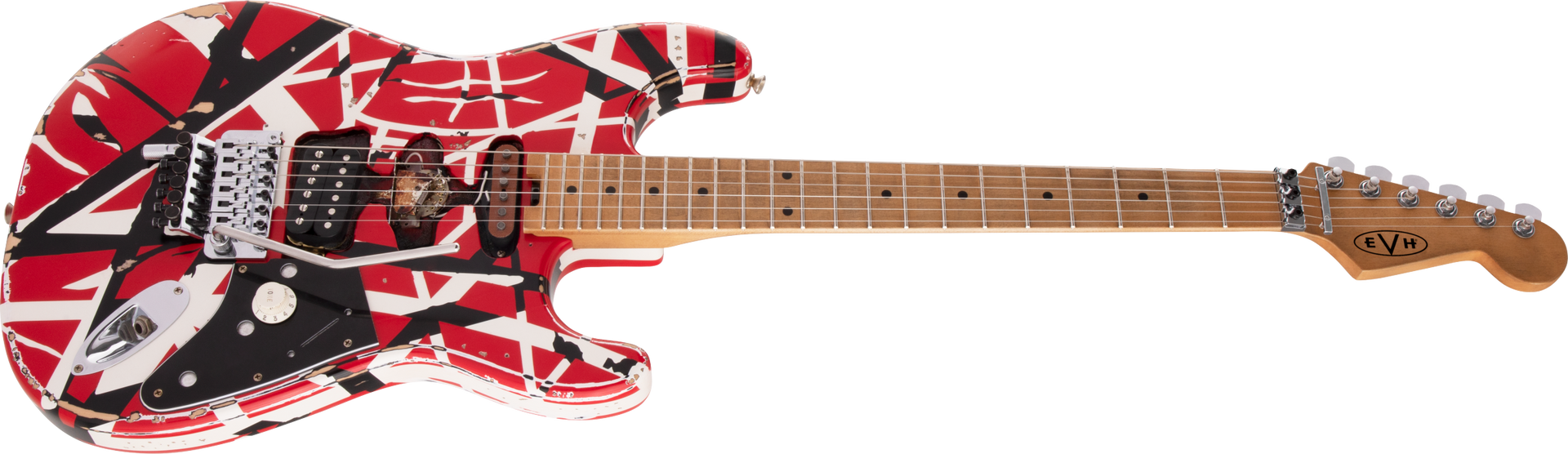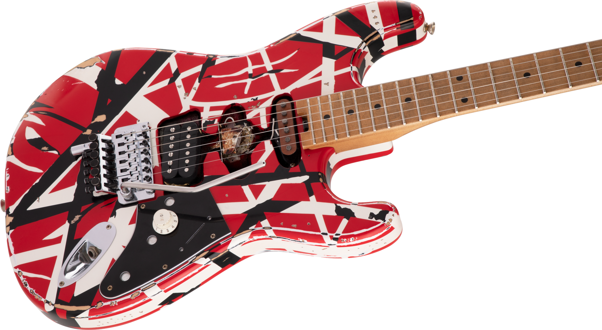 Routed for an HSS pickup configuration just like Eddie's original, Frankie also features an EVH Wolfgang® humbucking bridge pickup with a dummy Strat® neck pickup and a dummy five-way blade housed in the middle position.