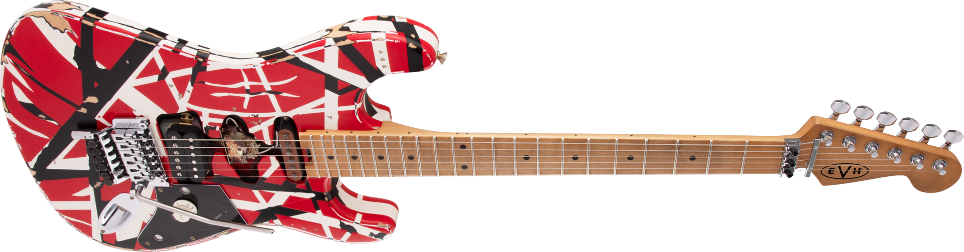 A sturdy and dependable EVH-branded Floyd Rose® locking trem and Floyd Rose locking nut work in tandem for precise tuning even with extreme changes in pitch, while the EVH D-Tuna® retunes to drop-D and back with strict accuracy at the flick of a finger.