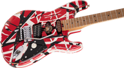A remarkable work of art, this baby sports Eddie's famed red with white-and-black-striped paint job with a worn-in relic look. Display it using a sturdy guitar stand or use a reliable wall mount to showcase it in all its glory.
