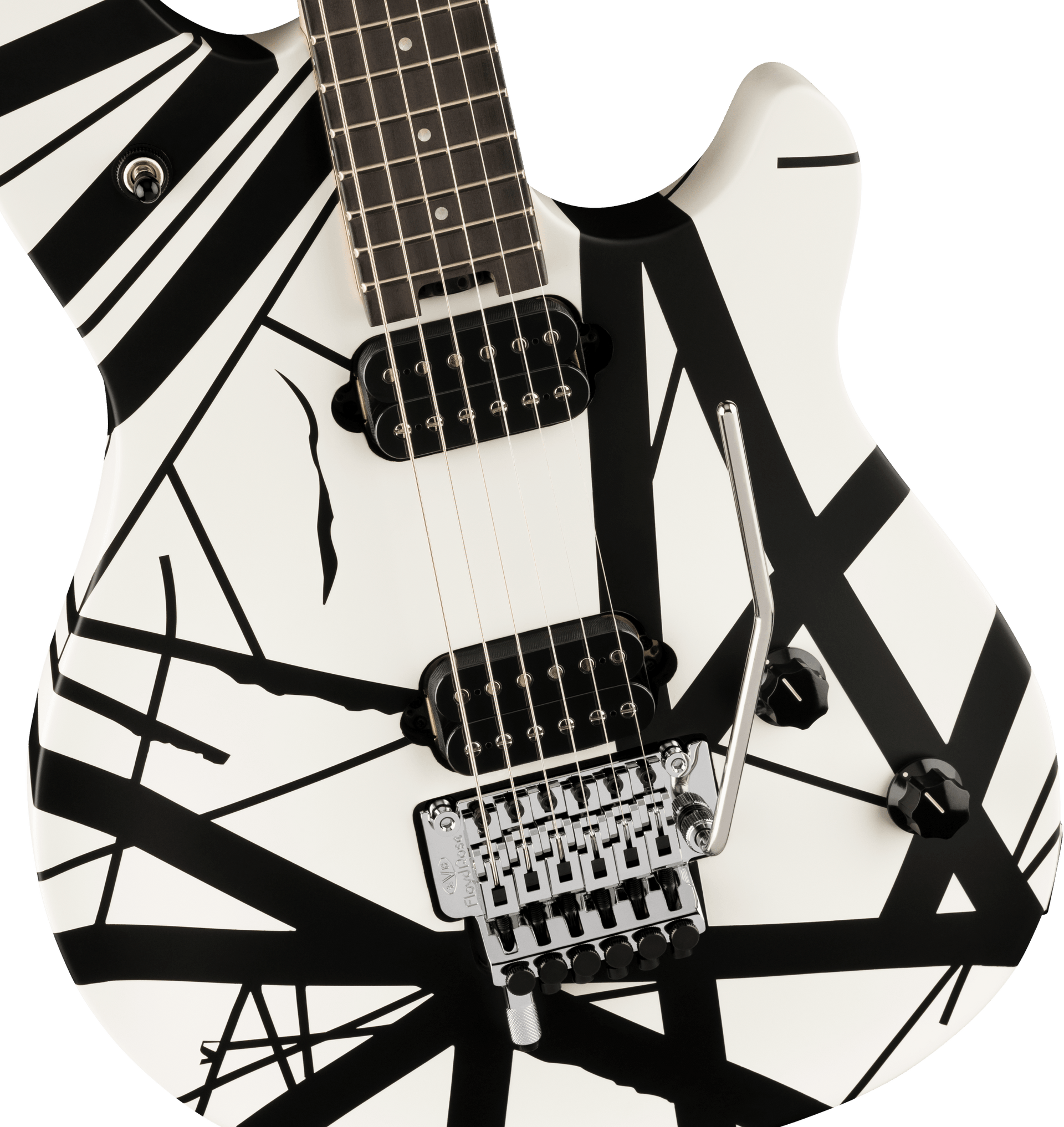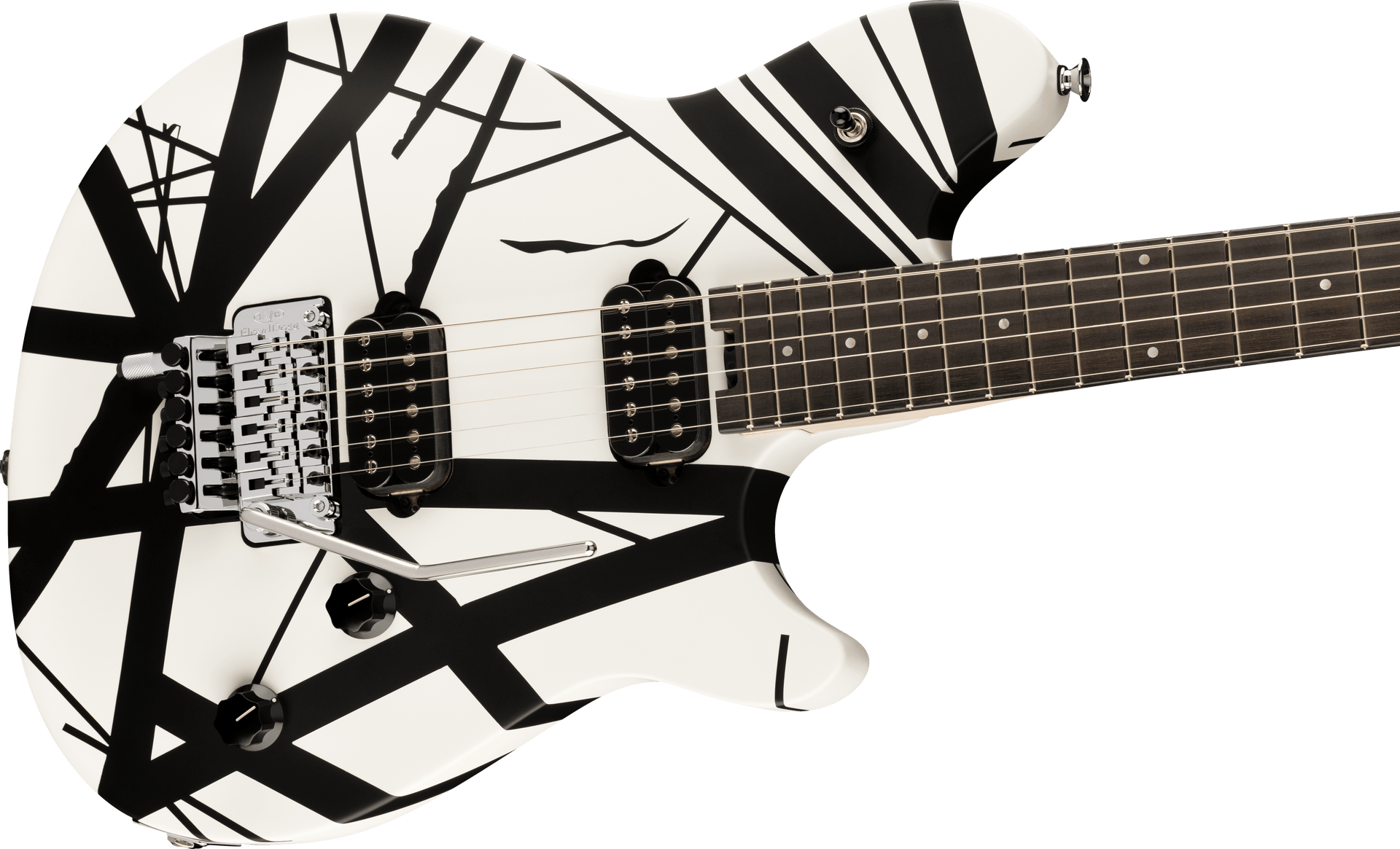 This authentic EVH guitar boasts an eye-popping striped finish in timeless black and white.