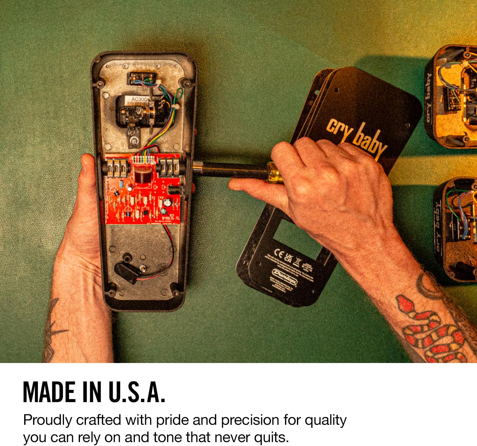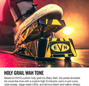 Dunlop's clones of the worn-in pot and hand-selected inductor give the EVH-95 the same "Holy Grail" feel and tone, and it's true hardwire bypass, dual bright blue bypass LEDs, and graphics based on the black and yellow-striped guitar featured on Van Halen II round out this EVH-approved Crybaby Wah Pedal with a voice and look all its own.
