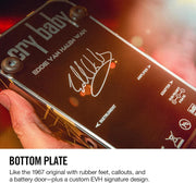 Early on in the process, Eddie handed over his "Holy Grail" Crybaby-a standard Crybaby customized in the early Nineties with a more vocal-like, High Q inductor and a wider frequency sweep. Amazingly, Dunlop found that over the years Eddie's unique wah style, which uses mostly the middle range of the effect pedal's action, had carved his own curve into the pot's resistive element, making the middle range even more defined and increased the low end sweep.