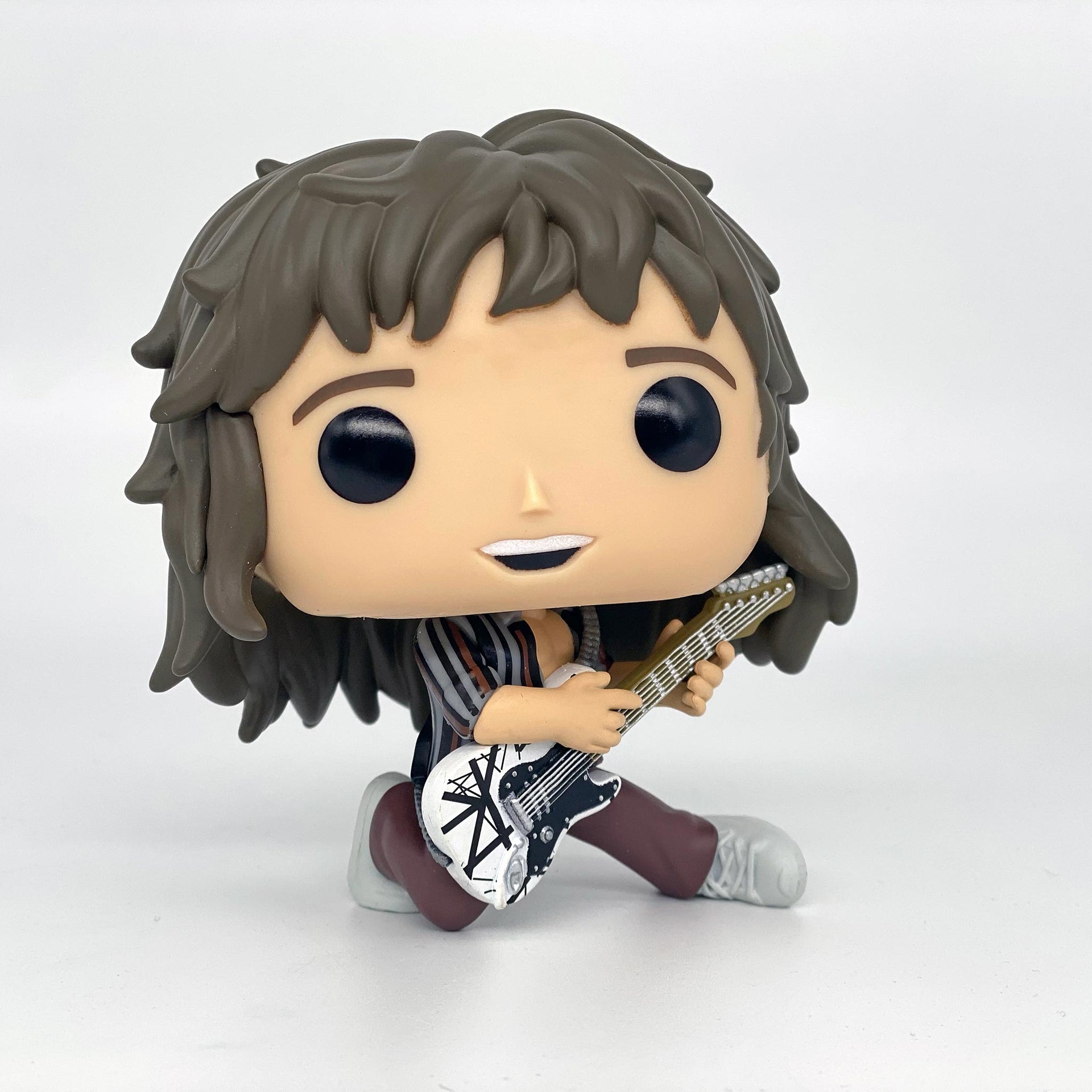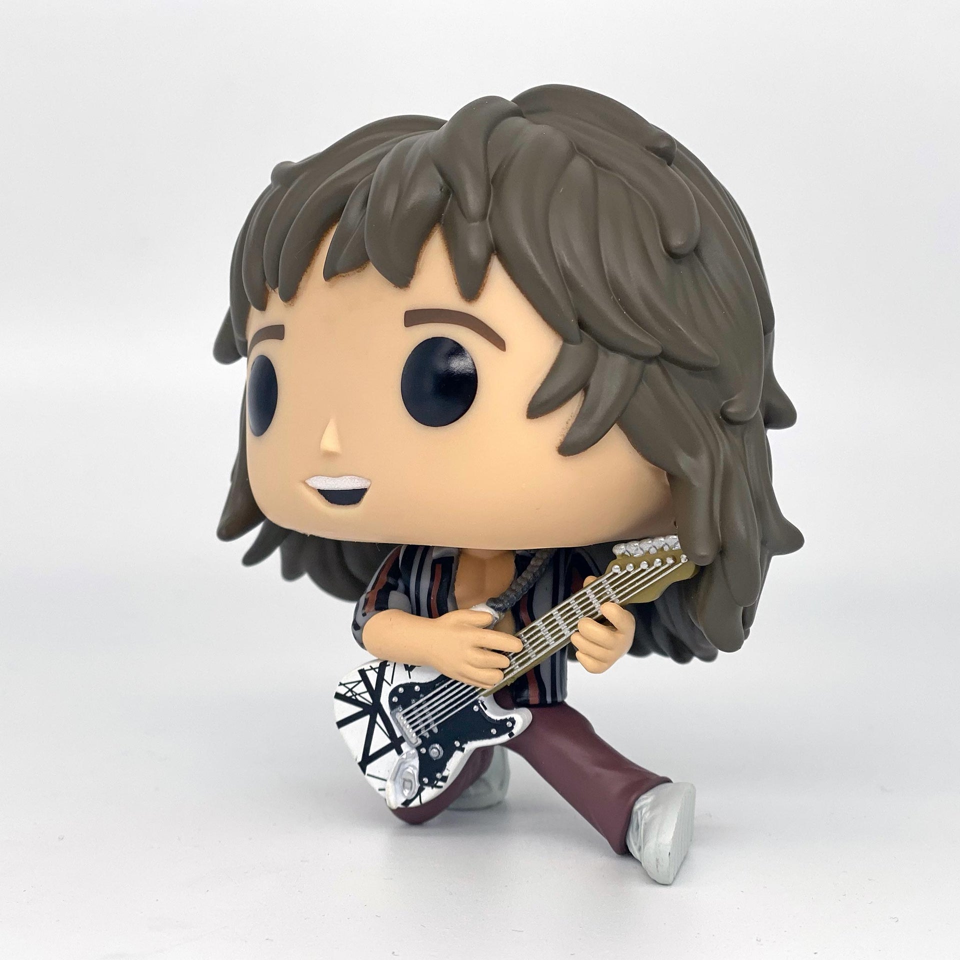 Funko's POP figures bring your favorite characters to life with a unique stylized design. Eddie Van Halen with Guitar, from Funko Pop! Rocks. Perfect for any music fan or collector.