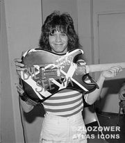 Ever the experimentalist, this guitar and its counterpart, the 'Shapes' guitar, varied from his previous builds in the composition of the woods used in the construction and body thickness. Also new was the implementation of the newly developed locking tremolo system, which was in its infancy as a new development in the electric guitar's evolution. Eddie would be the pioneer and universal ambassador of the locking tremolo system, now a defacto commonplace in guitar design.