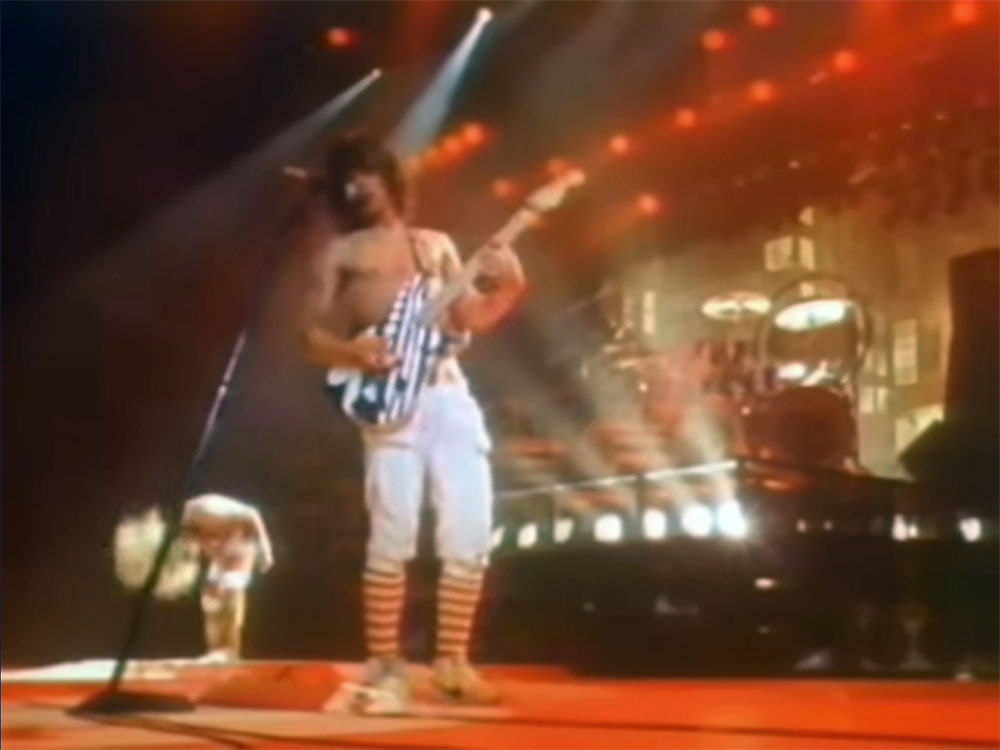 Known to fans as the 'Circles' guitar (and sometimes as the 'Unchained' guitar), Eddie debuted this guitar to the world on the 1981 tour cycle for the FAIR WARNING album.