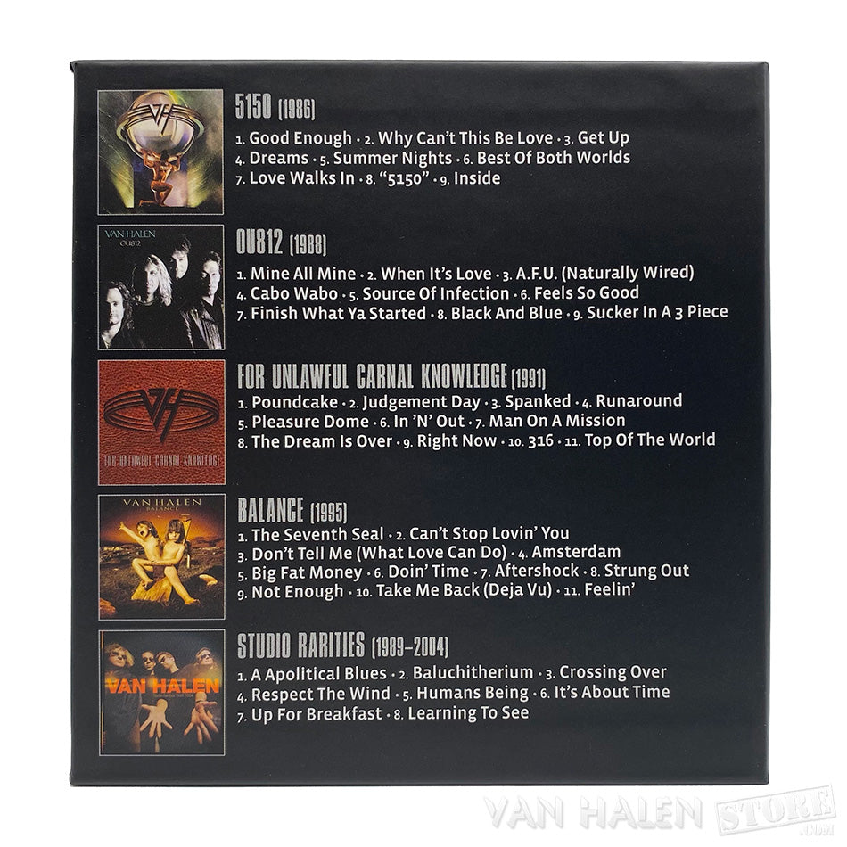 THE COLLECTION II is a 5-CD Box Set spotlighting Van Halen’s second incarnation, with singer Sammy Hagar, guitarist Eddie Van Halen, drummer Alex Van Halen, and bassist Michael Anthony. (The Vinyl version is permanetly sold out).
