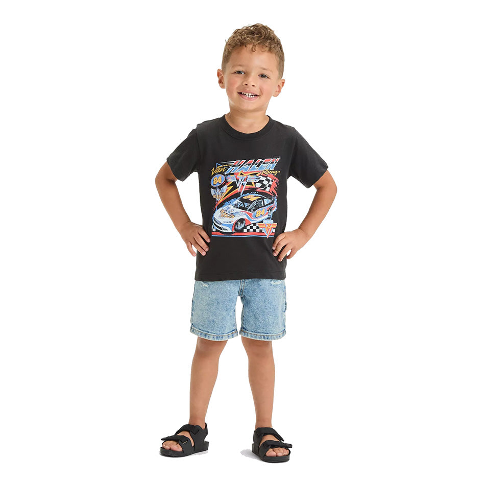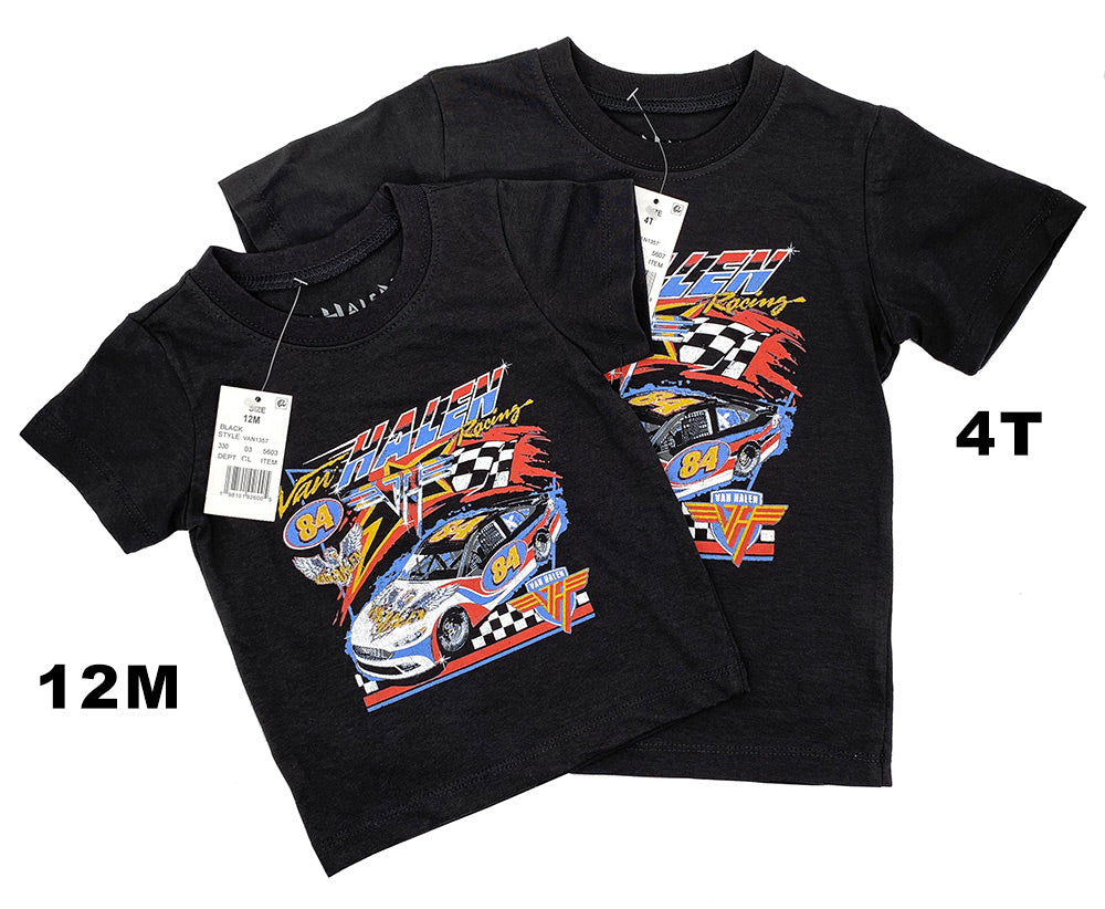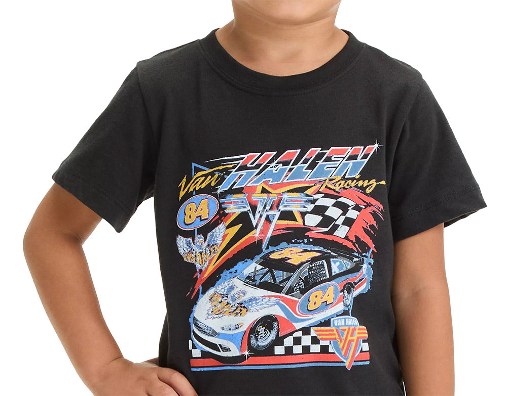 Your little guy might not have been born during Van Halen's heyday, but he can JUMP back to the '80s with this fired-up Van Halen tee! The iconic VH logo mixed with fun and retro racing designs.