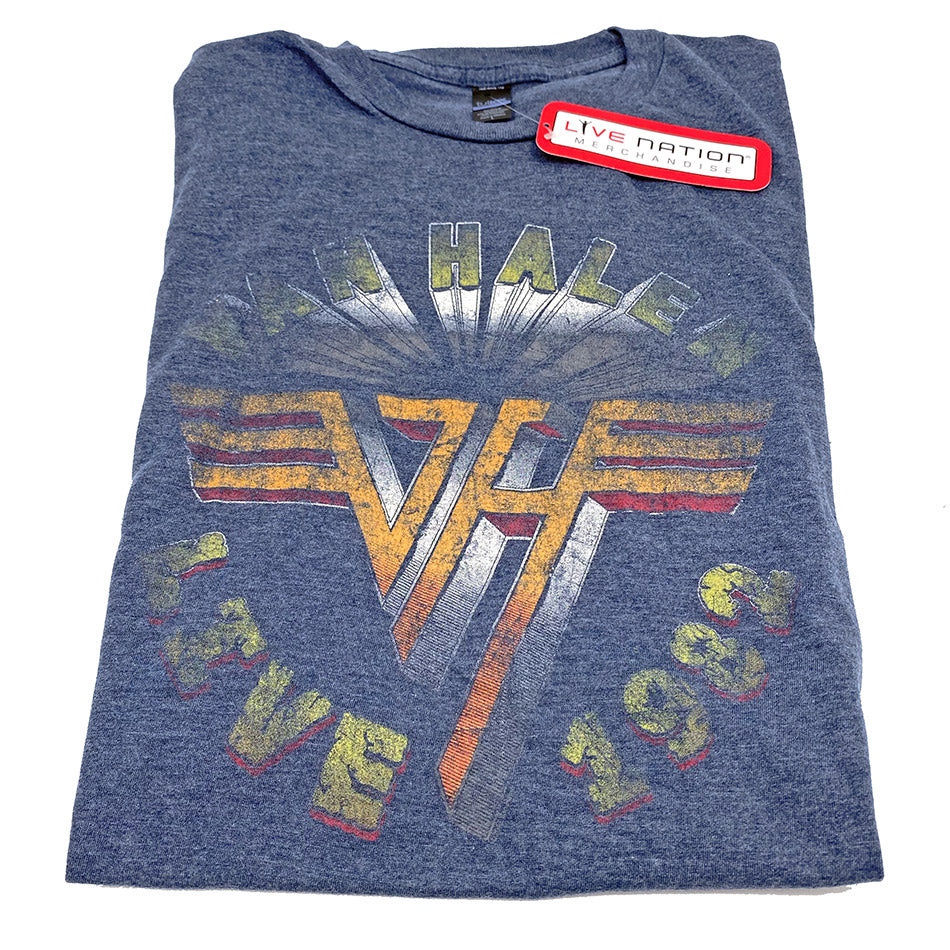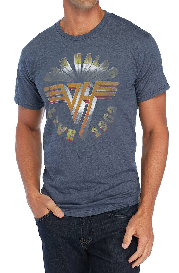 A heather blue tee sporting Van Halen's "Live 1982" logo - nice and faded for an extra-vintage look.