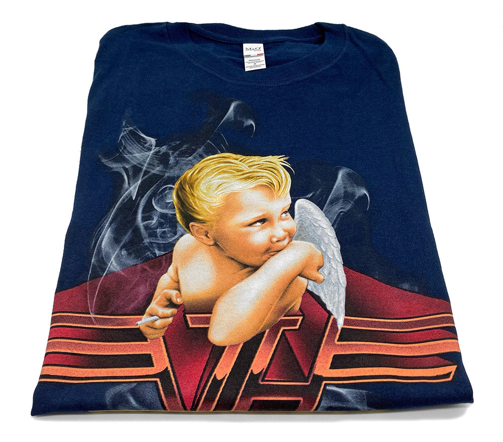 This tee features one of rock 'n' roll's most iconic images - the mischievous baby smoking a cigarette - from Van Halen's mammoth 1984 album! 1984 spawned timeless hits such as "Jump," "Panama," Hot For Teacher," "I'll Wait" and more!