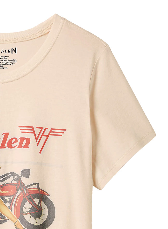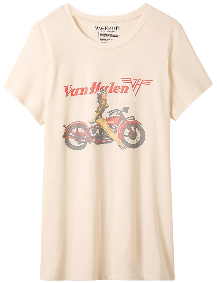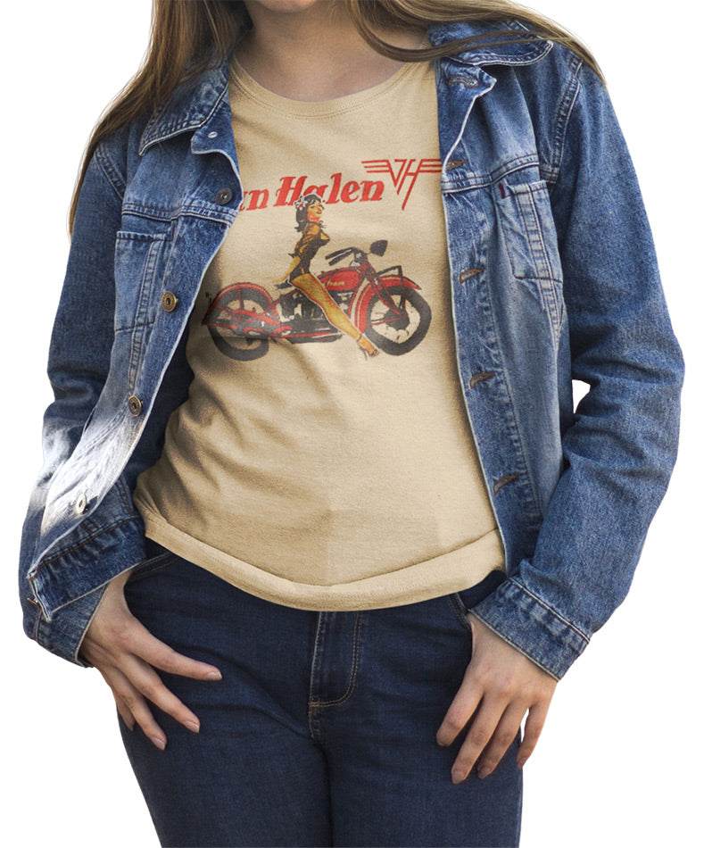 Bring vintage rock style to your wardrobe with the latest Van Halen Motorcycle T-Shirt. This retro tee features a crew neckline, short sleeves, a standard fit, and vintage pinup motorcycle graphics at the front.