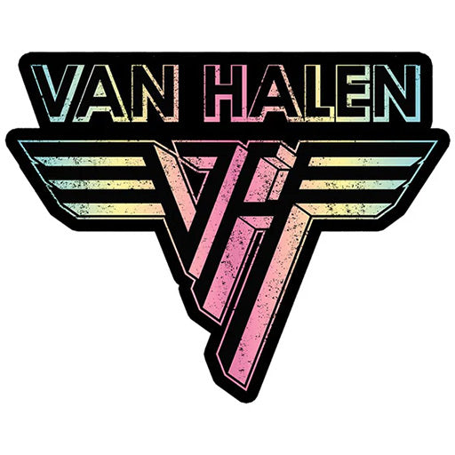 Die-cut, colorful Van Halen logo sticker. Slightly distressed look.