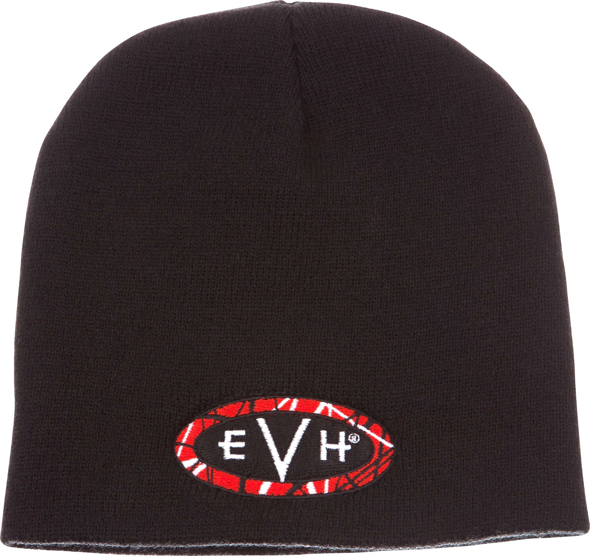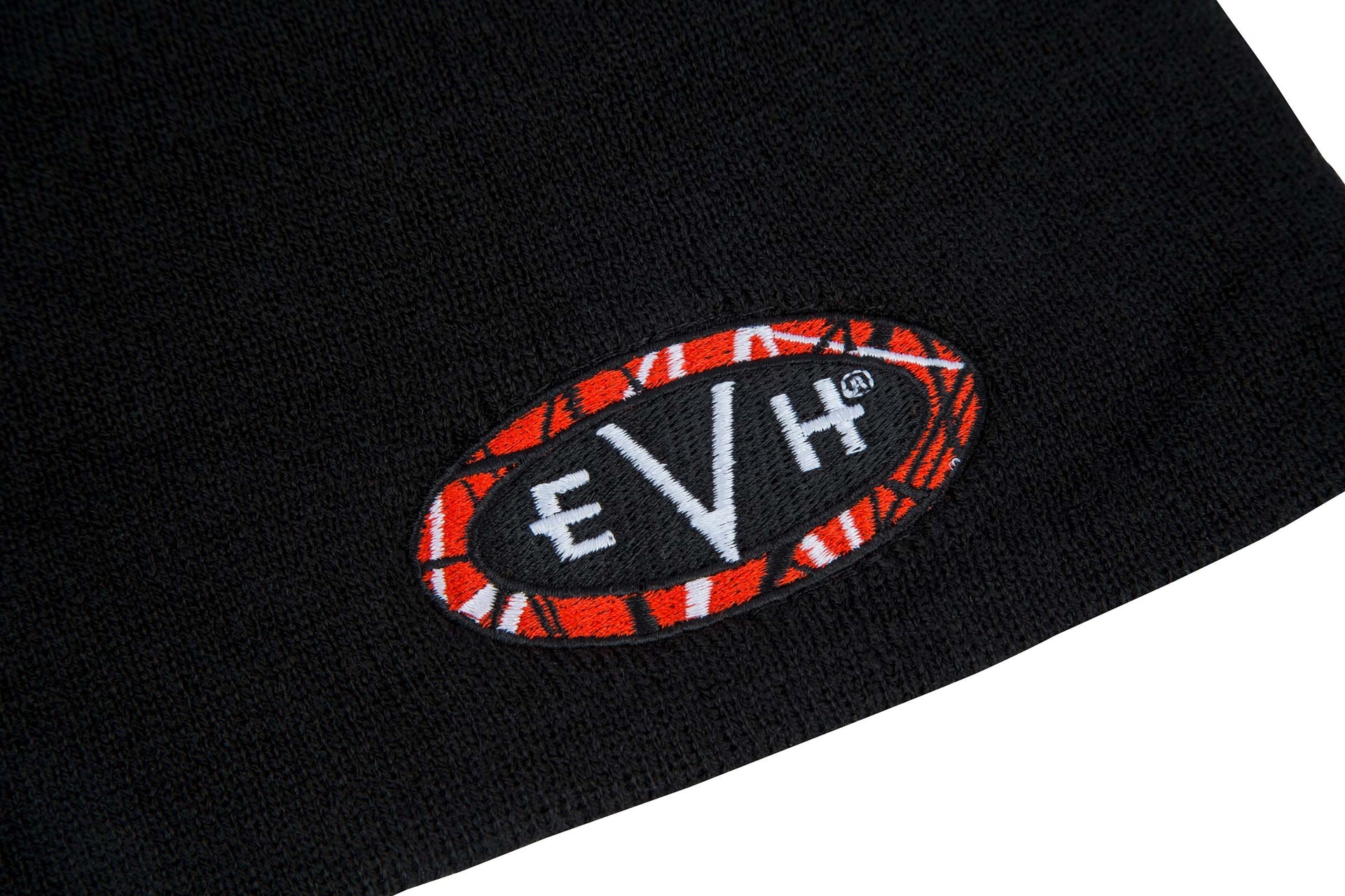 Keep your head warm, and look great doing it! This black knit beanie features an embroidered red, black and white EVH® logo. Keep it simple with the classic Eddie Van Halen beanie.