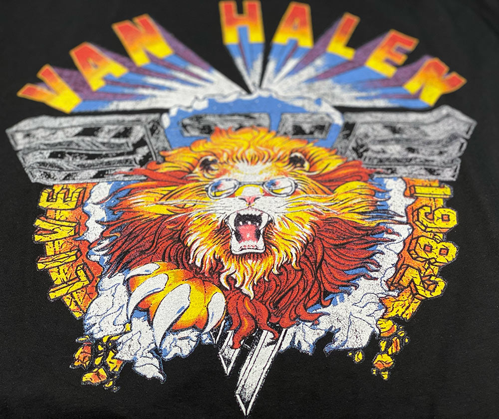 "For the 1982 tour, the logo design was a lion wearing sunglasses with palm trees reflected in the lenses. That logo alone delivers a message, a lifestyle, an attitude. Right away, whether you're from Korea or Tijuana, you get it." —David Lee Roth