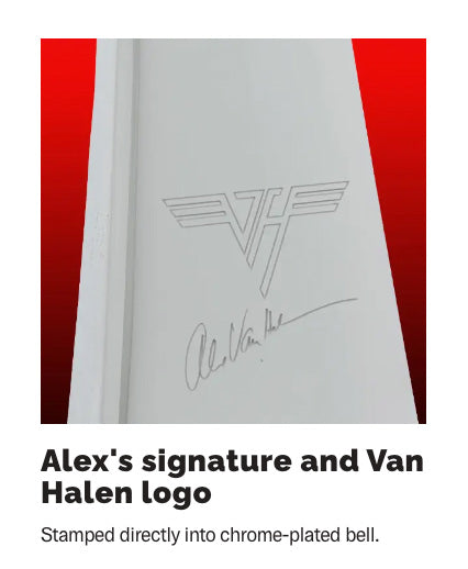 This limited edition, mountable, and American-made bell pumps out rock-ready tone, while the sparkling chrome finish and stamped Alex Van Halen signature and VH logo will make you the envy of any Van Halen fan.