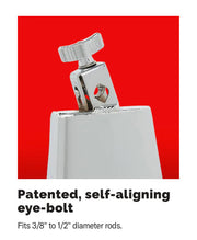 • Patented, self-aligning eye-bolt fits 3/8" to 1/2" diameter rods